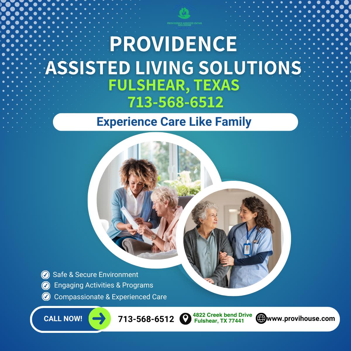Providence Assisted Living Solutions in Fulshear, TX provides compassionate senior care in a safe, comfortable home. Schedule a private tour of our assisted living home.