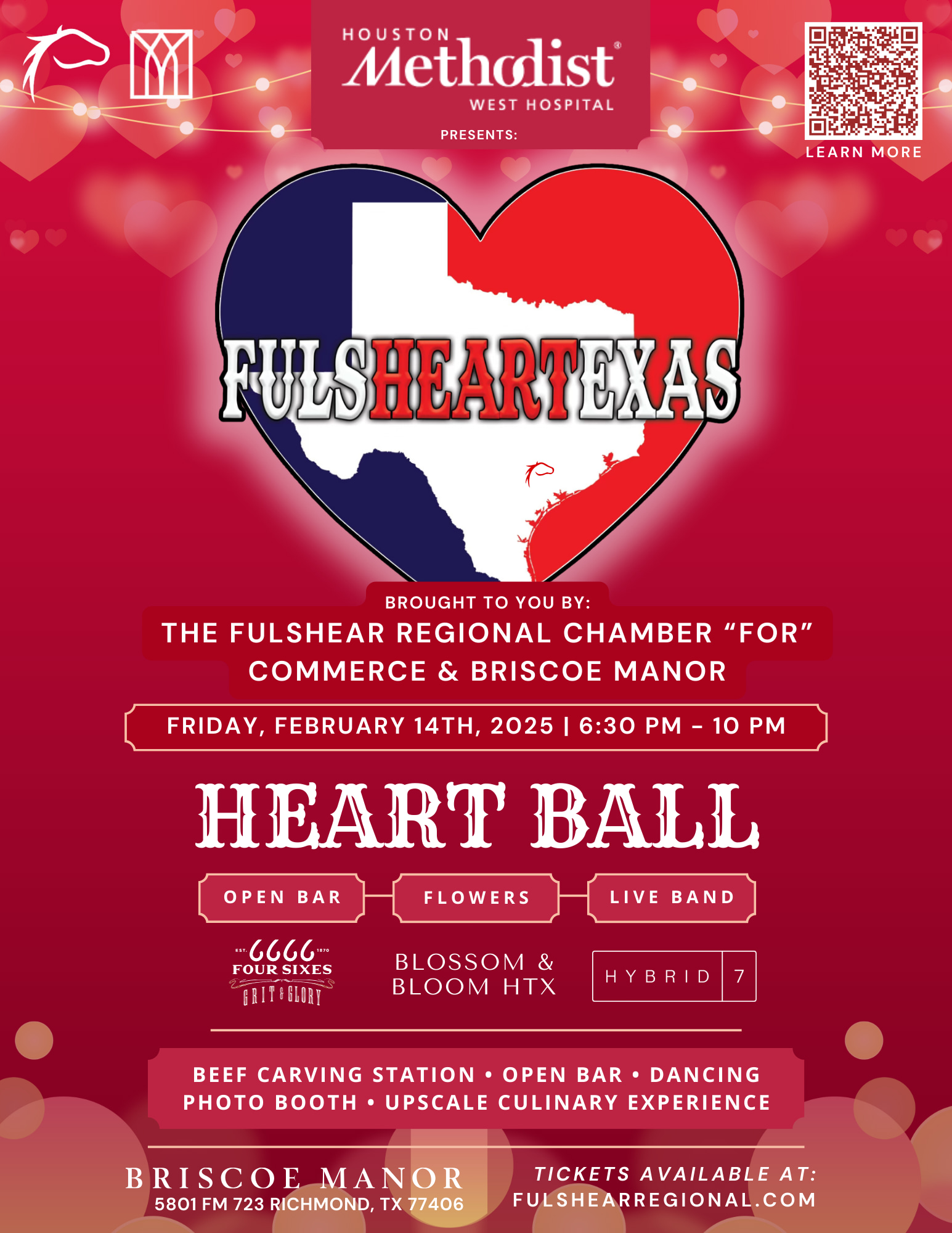 This Valentine’s Day, join us for an unforgettable evening at The Fulshear Texas Heart Ball, hosted by the Fulshear Regional Chamber For Commerce and the stunning Briscoe Manor.