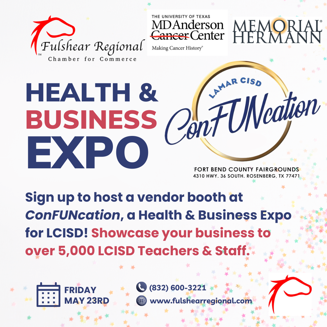 Don’t miss your chance to be a part of L.C.I.S.D.'s 2025 ConFUNcation Health & Business Expo, hosted by the Fulshear Regional Chamber of Commerce!
