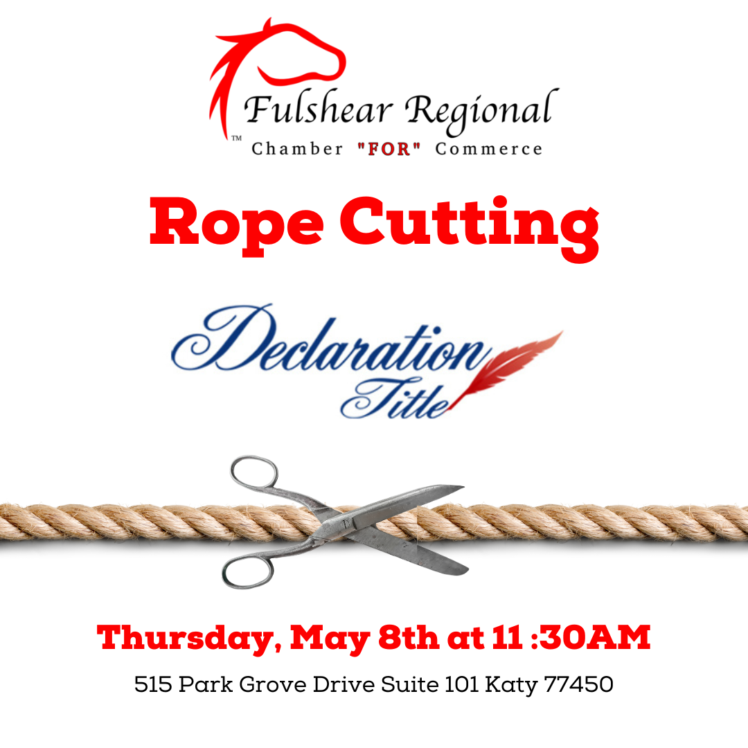 Join us Thursday, May 8th at 11:30 AM for a special Rope Cutting Ceremony for Declaration Title!