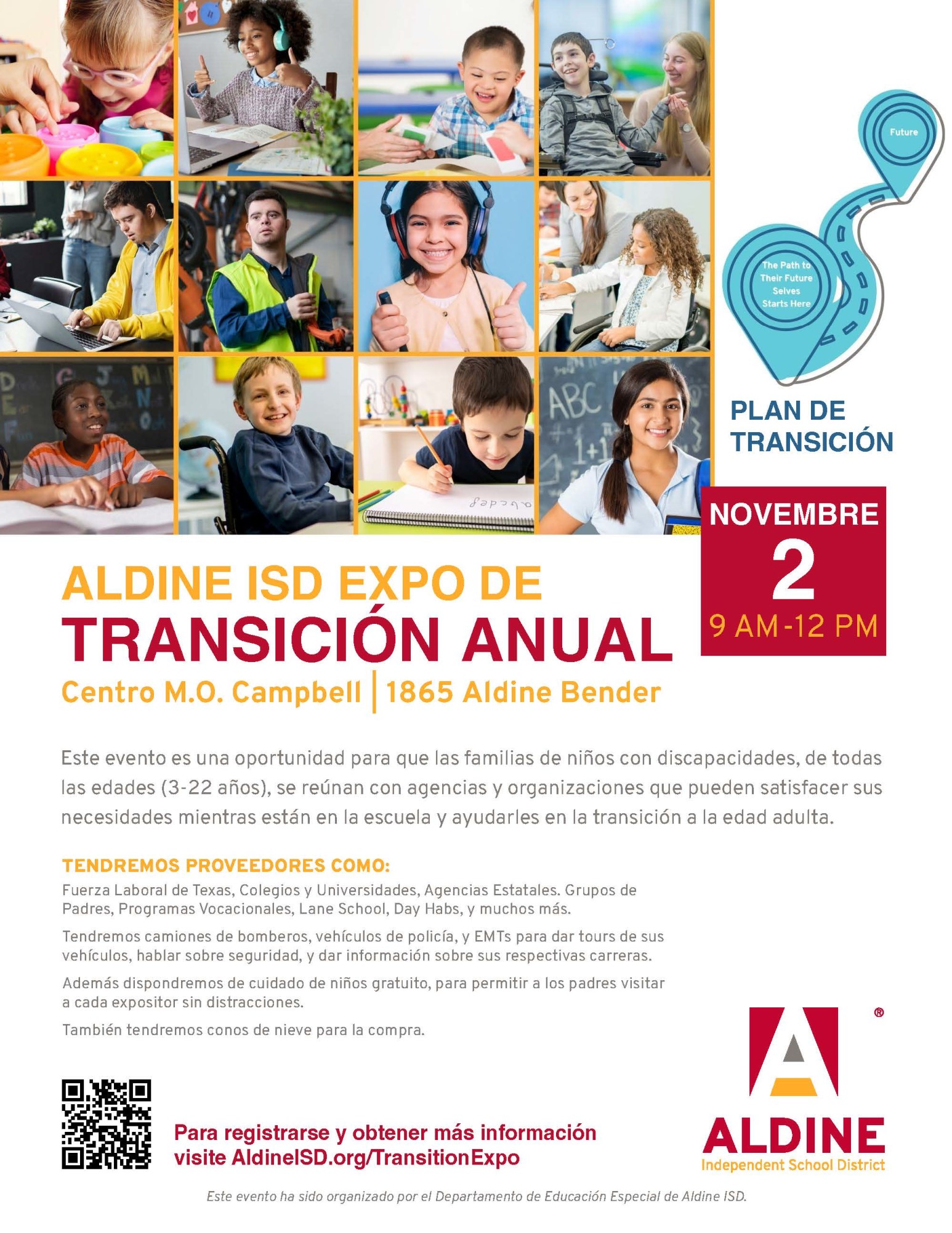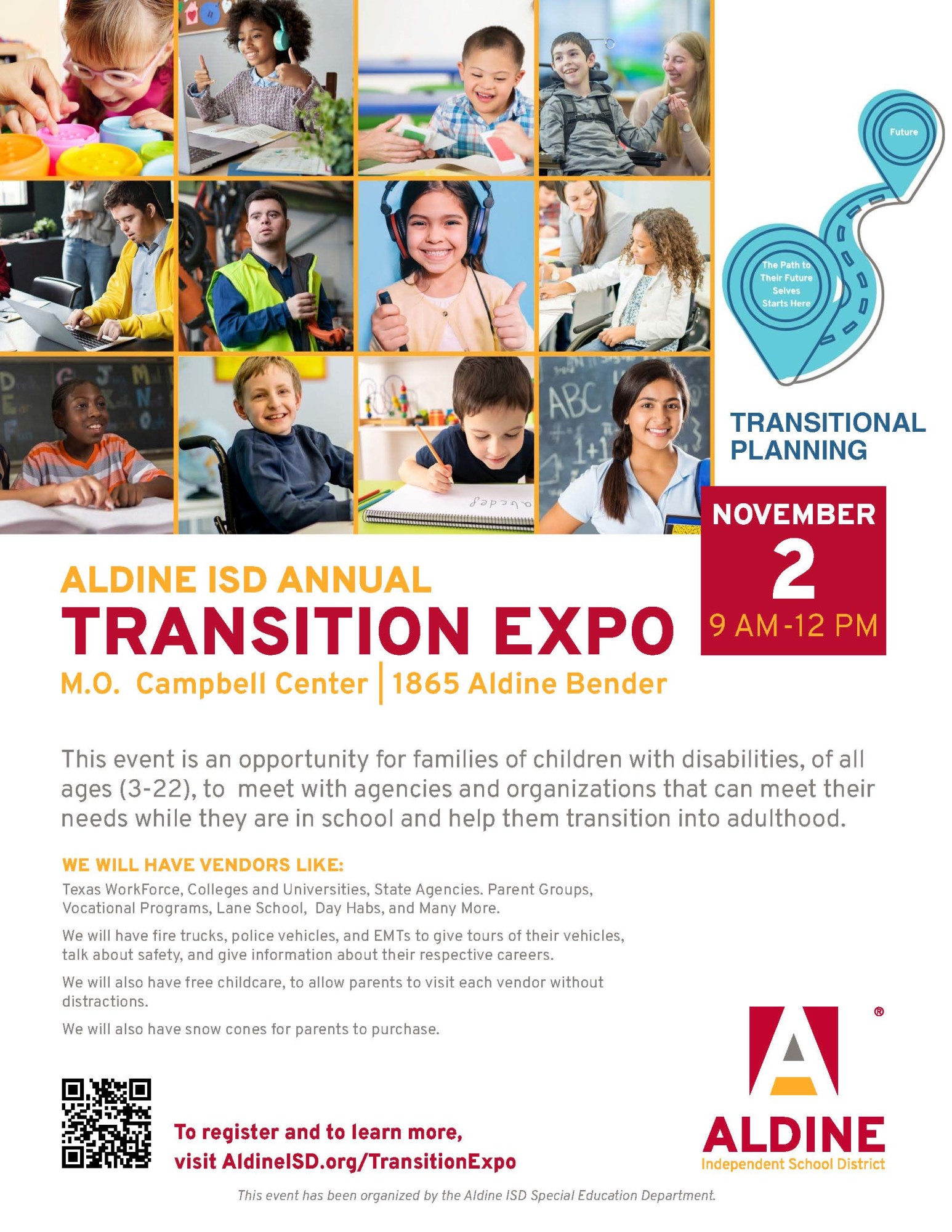 Aldine ISD is holding their annual Transition Expo to provide families with information from community partners including agencies, college, trade school, programs, and related companies.