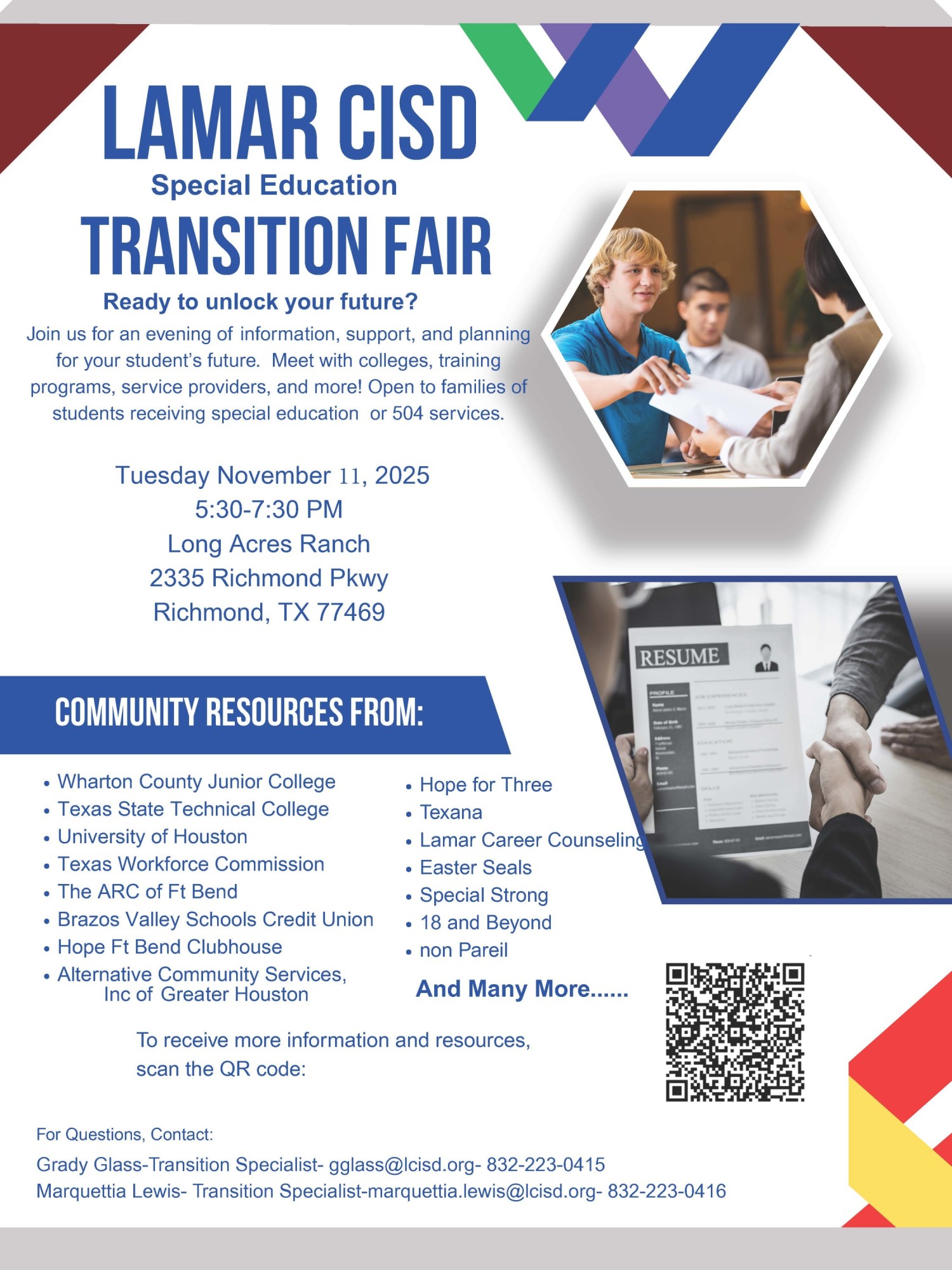 SPECIAL NEEDS FAMILIES: Lamar CISD Special Education Transition Fair