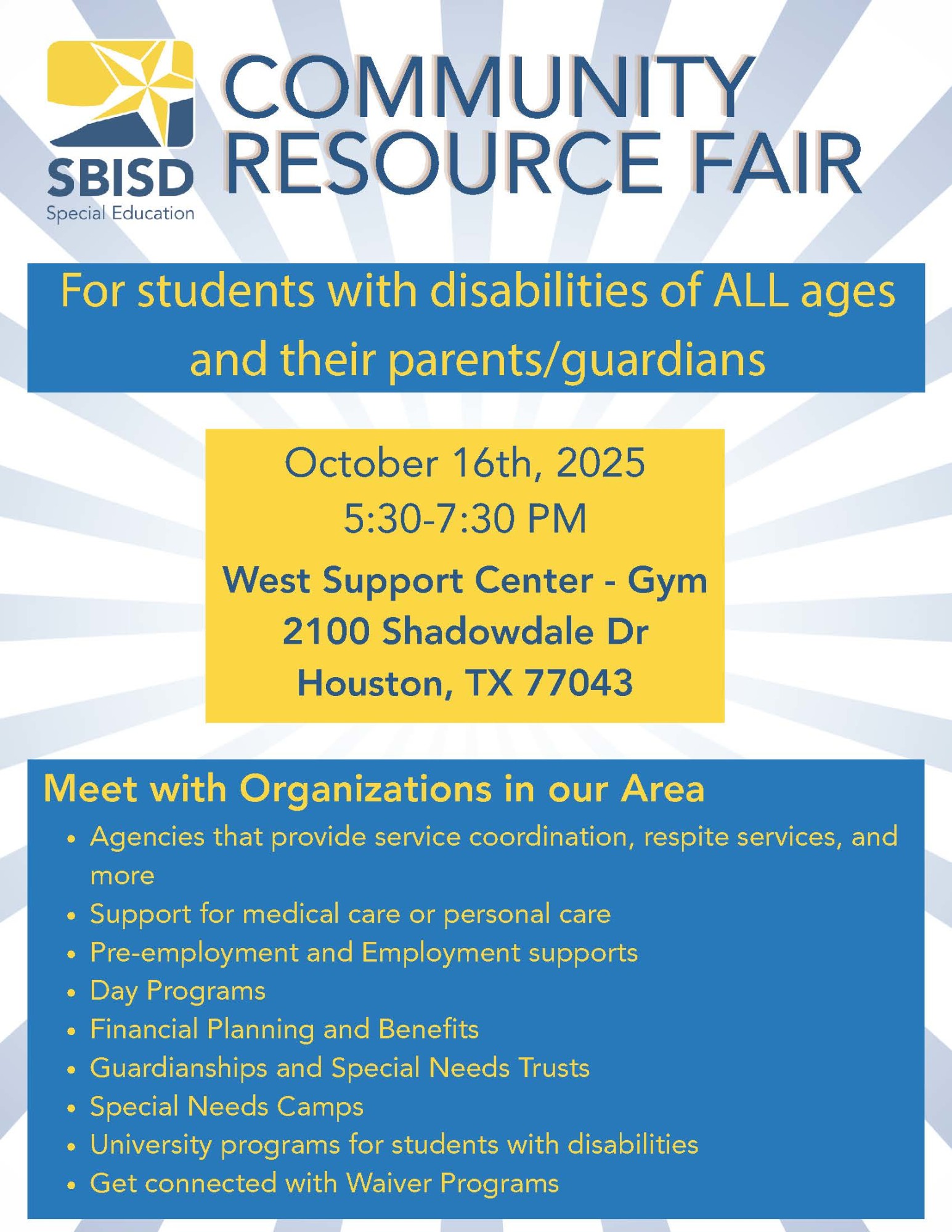 SPECIAL NEEDS FAMILIES: Spring Branch ISD Community Resource Fair