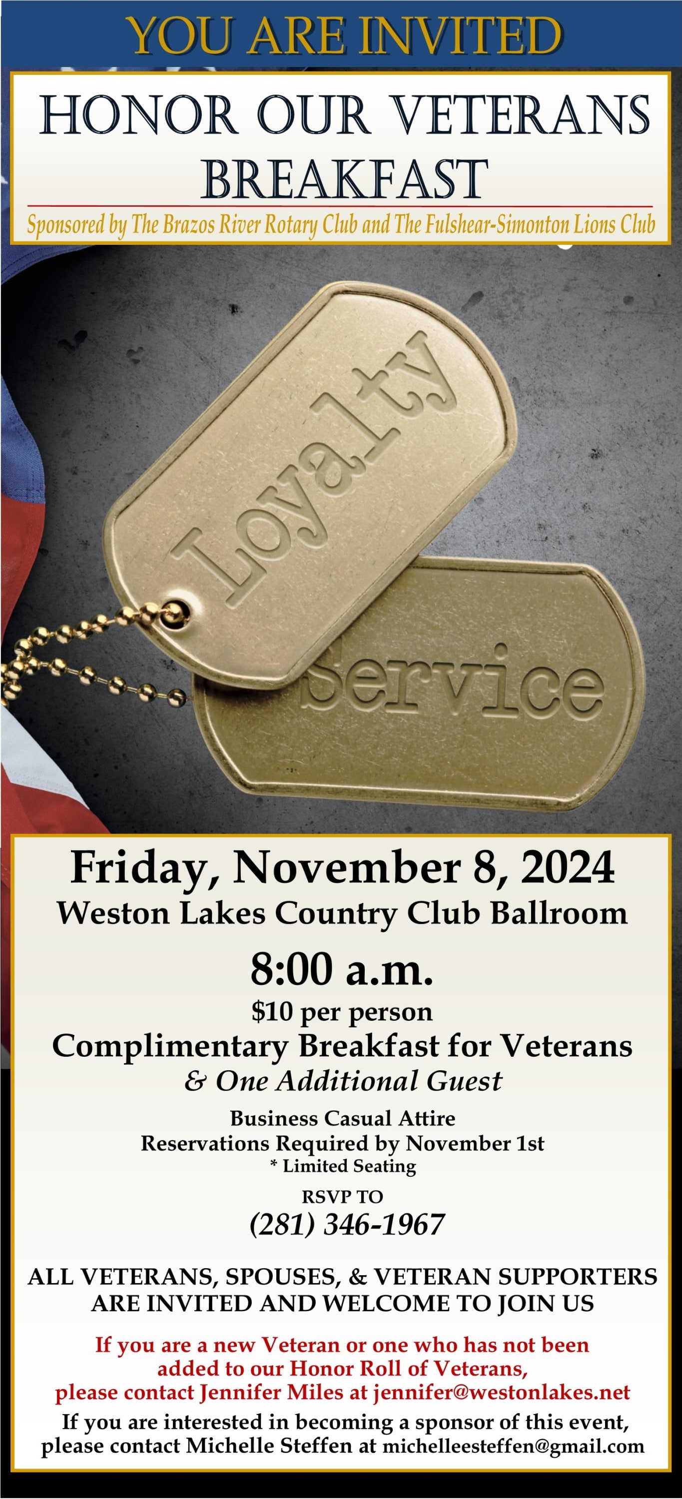 You are invited to Honor Our Veterans Breakfast